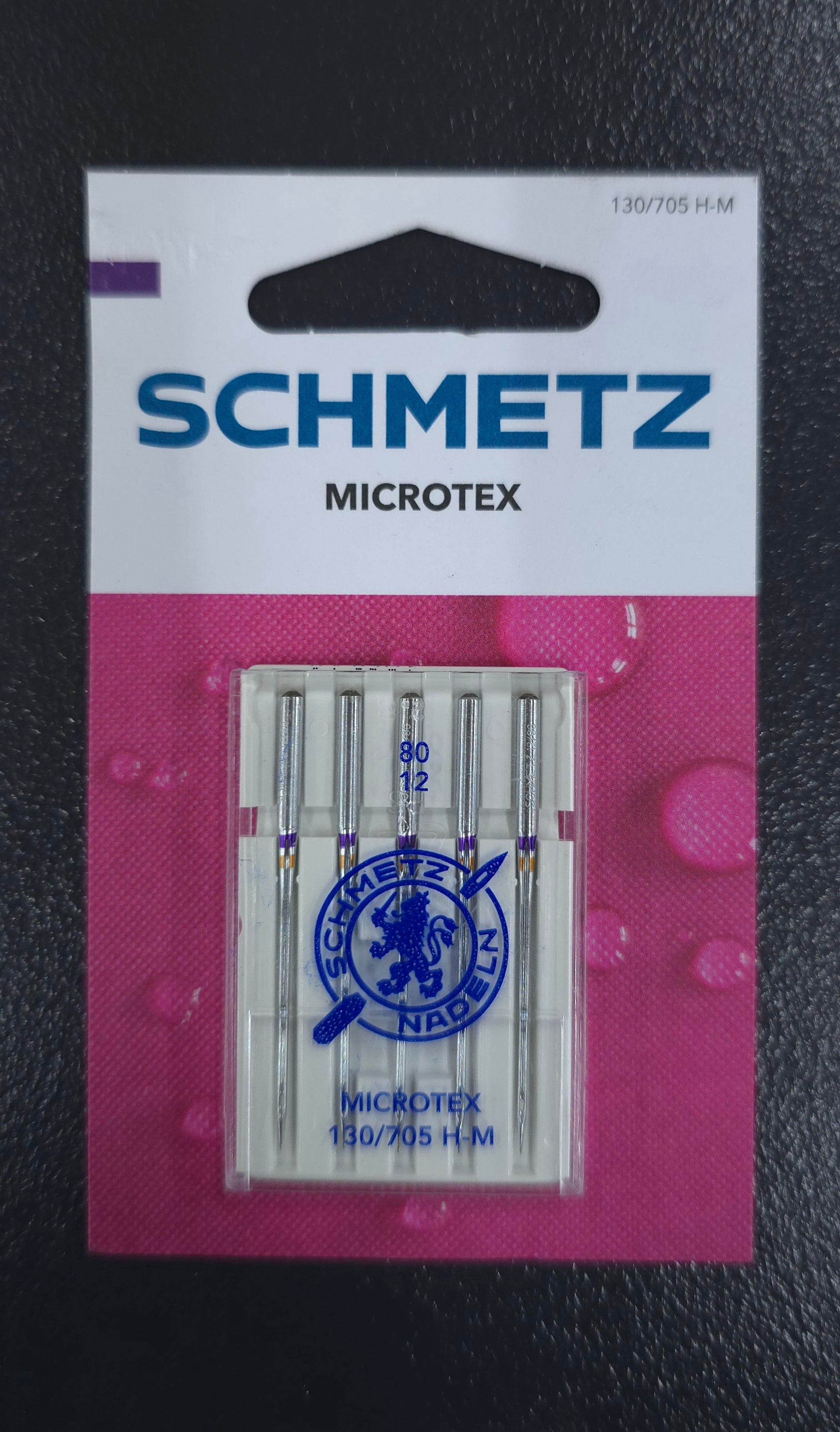 Schmetz Microtex Needles feature a very slim acute point for use with micro fibers, polyester, silk, foils, artificial leather and coated materials. The unique tip allows for precise stitching in materials that are exceedingly delicate or densely woven.