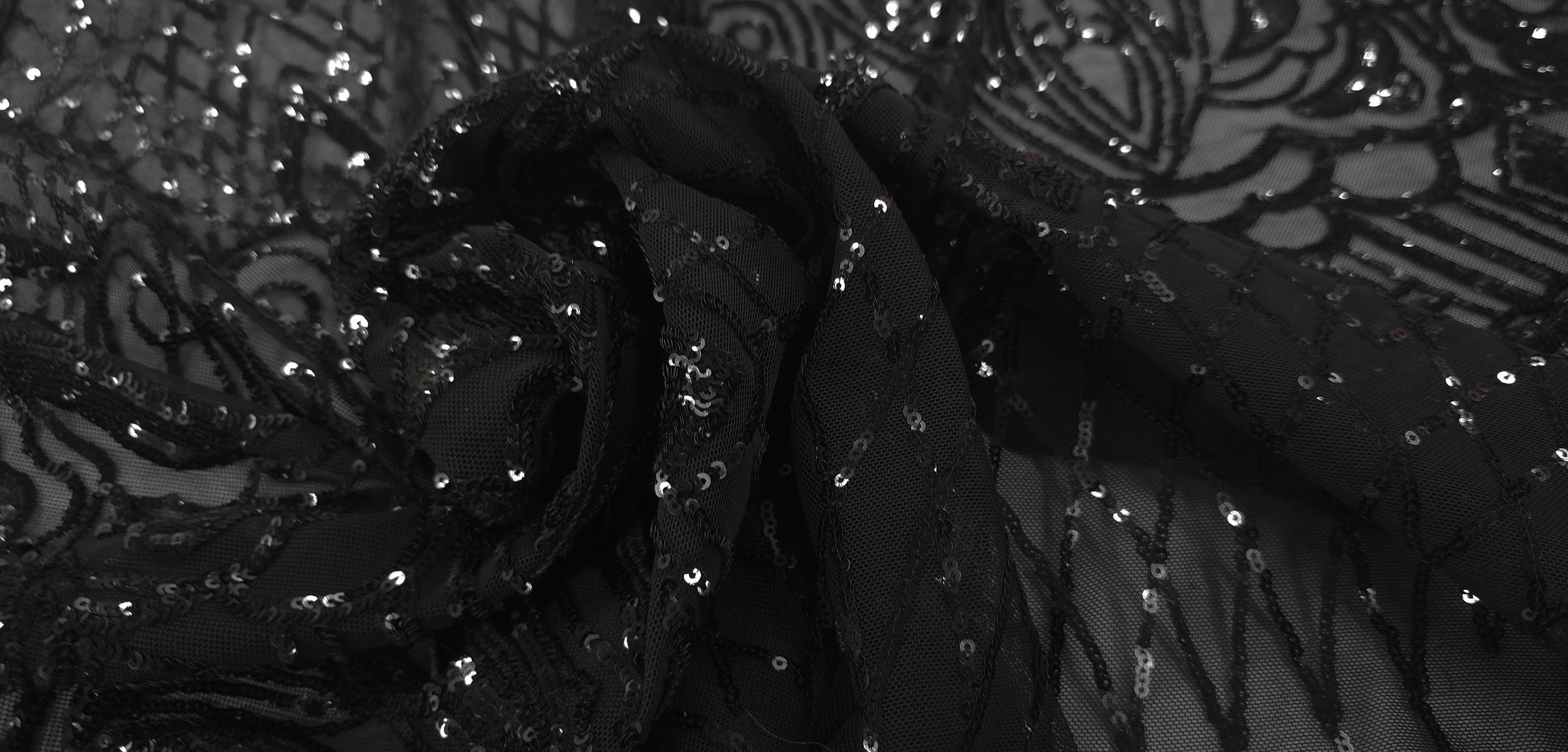 Sequinned Stretch Mesh Bedazzled Black