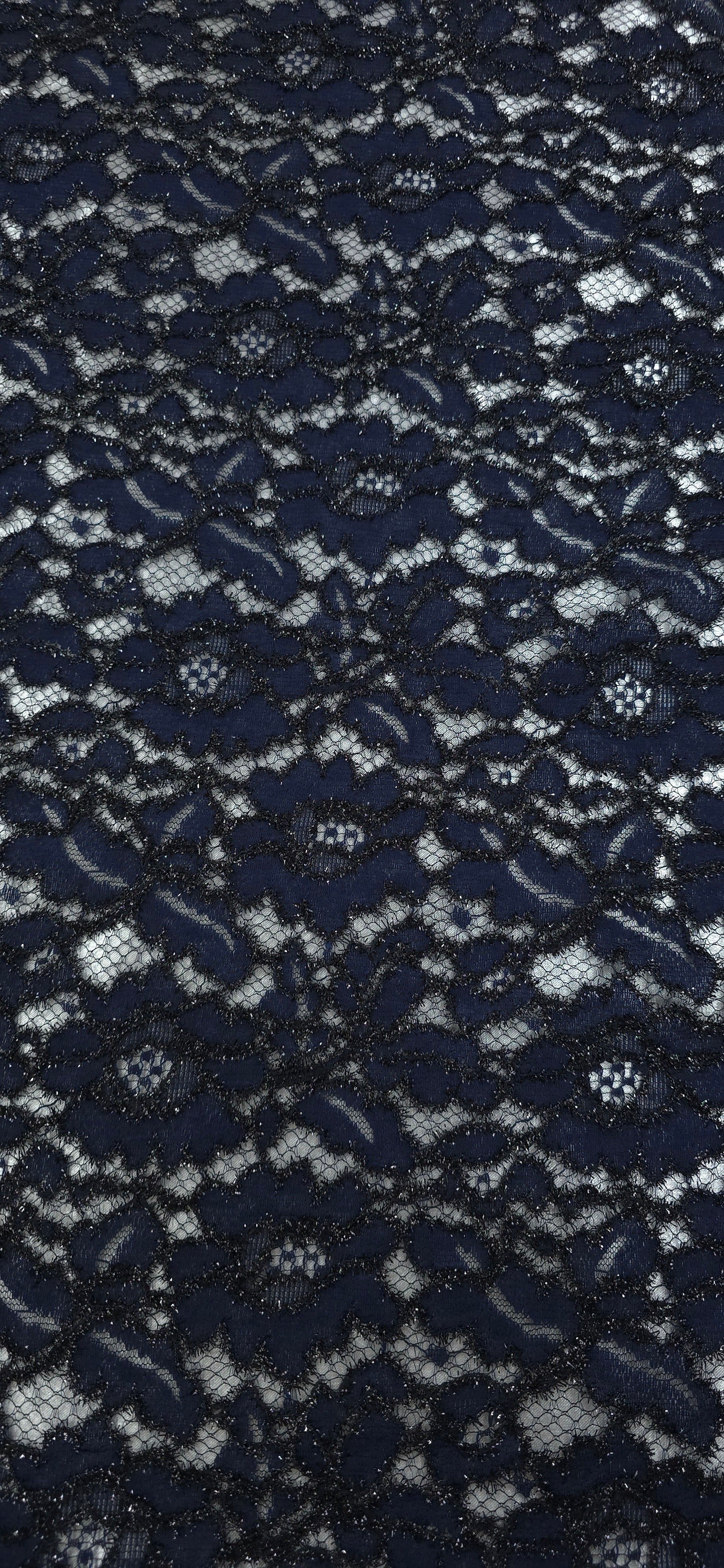 Embroidered Lace Metallic Dream Dark Navy