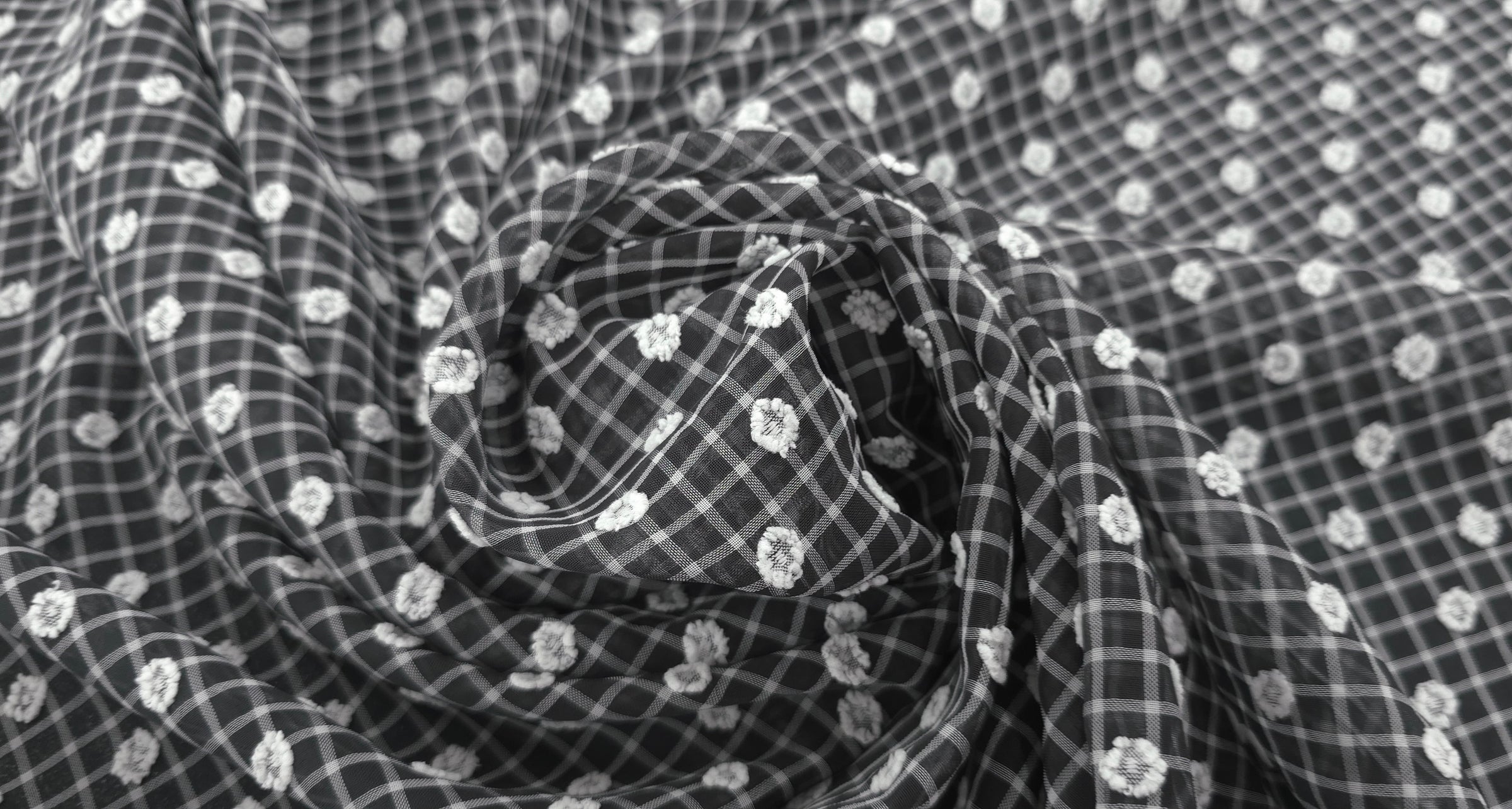 Lightweight chiffon fabric with raised floral detailing, suitable for soft flowing casual wear garments or scarves
