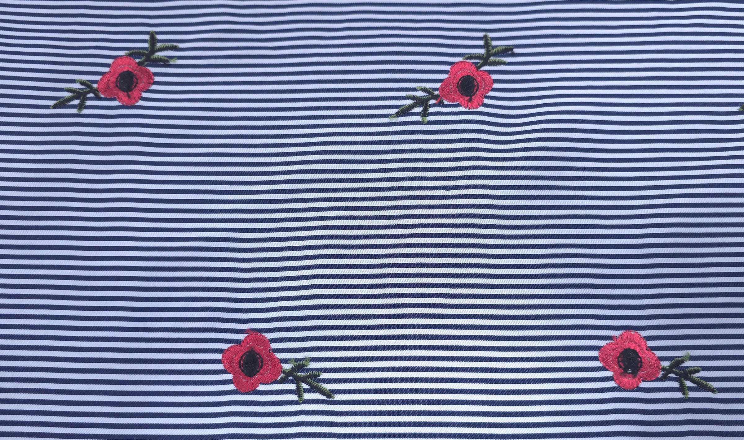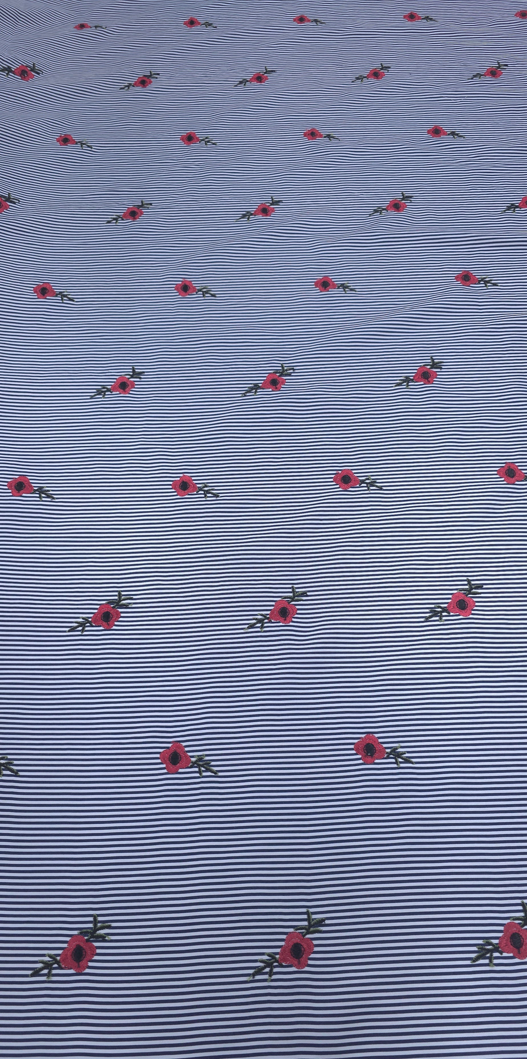 Light weight printed polyester with embroidered flowers, suitable for casual wear garments
